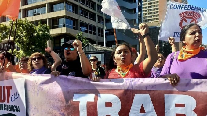 Dirigentas de la CUT participan en multitudinaria marcha del 8M